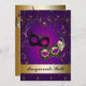 El Purple Mardi Gras enmascara invitaciones al baile de máscaras. Esta hermosa invitación al baile de máscaras moradas y doradas se personaliza fácilmente para tu evento, agregando detalles del evento, estilo de fuente, tamaño y color de fuente y redacción.