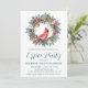 Impresione a los clientes y colegas con esta elegante invitación de la oficina de Navidades. El diseño clásico y tradicional presenta un cardenal rojo en el centro de una corona de pino y flor de hebra. Las bayas rojas y las flores rojas y blancas la hacen pop. La caligrafía clásica y la tipografía le dan un aire atemporal. La plantilla es fácil de usar y tendrá rápidamente una invitación de aspecto profesional. También se dispone de material de fiesta de coordinación y de señales de bienvenida.