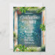 Elegante diseño tropical de verano de estilo mediterráneo "Fiesta de la piscina de graduación" con detalles fiestas sobre una magnífica piscina de baldosas acuáticas rodeada de hermosos y exuberantes paisajes tropicales.