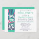 El aspecto de la escena de la playa es de estilo retro Diseño de la fiesta de graduación. Una playa de atardecer retro, azul, verde azulado y rosa, con palmeras y una tortuga. Ideal para los fiestas de piscina y playa. Diseño por diseños de Holiday Hearts (derechos reservados).