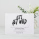 Las invitaciones a una fiesta de soltera con dibujos divertidos de chita "Vamos a ser salvajes" son una forma divertida de invitar a la brida de la novia a salir a pasar una noche en la ciudad para su fiesta de soltera. Personalizar con los detalles de la noche. La invitación se invierte a coordinar la impresión animal en el reverso.