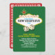 Texto de fiesta de Nochevieja dentro del signo de bienvenida de Las Vegas, con dados, un fondo de fieltro verde, y un diseño de cartas de juego al revés. Personalice este diseño cambiando el texto. Póngase en contacto con el vendedor si necesita ayuda.