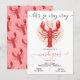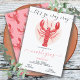 Invitaciones modernas y divertidas para una fiesta de langostinos. Cuenta con un gran langostino listo para volverse loco en la fiesta de Carnaval. Colores rojo, naranja y blanco.