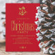 Comparte la alegría e invita a tus amigos y seres queridos a la celebración de tus Navidades con esta sencilla pero elegante invitación a la fiesta de los Navidades rojos y de oro.