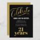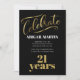 Elegante invitación a la fiesta de cumpleaños 21 en negro, oro y blanco para las mujeres.