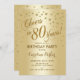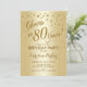 80.ª invitación a la fiesta de cumpleaños para hombres y mujeres. Elegante carta de invitación con falso efecto purpurina de oro y Relieve metalizado dorado. Presenta un diseño elegante de tipo de letra y letra de guión. ¡Saludos a 80 años!