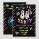 ¡Festa como si fuera 1988! Esta invitación a fiesta retro es una celebración de la década de los 80. Todos los colores chillones sobre un fondo negro.