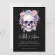 Disfrute de una noche de estilo con elegancia con este elegante Skull y la floral invitación a la fiesta de los disfraces y los cócteles góticos de Halloween. Con un detallado cráneo vintage rodeado de suaves flores rosadas y violetas en un fondo negro profundo, este espeluznante diseño de moda es perfecto para fiestas adultas de Halloween, veladas embrujadas, reuniones góticas y eventos de disfraces. Ideal para los amantes de la elegancia oscura con un toque de belleza floral. Fácilmente personalizar con los detalles de tu evento para una noche de cócteles, disfraces y un encanto espeluznante.