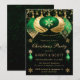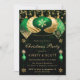 Elegante Purpurina Verde y Oro bautiza diseño de adornos navideños con fondo verde oscuro y bokeón dorado