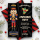 Sorprenda a sus huéspedes con esta elegante invitación de fiesta de Navidades que presenta un lindo petardo con una tipografía vibrante contra un fondo de estrella negro. Simplemente agregue los detalles de su evento en esta plantilla fácil de usar para convertirla en una invitación única. Voltea la tarjeta para mostrar un patrón de starburst rojo y negro en la parte posterior de la tarjeta.