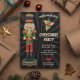 Sorprenda a sus huéspedes con esta elegante invitación de fiesta de Navidades que presenta un lindo petardo con una tipografía vibrante contra un fondo de estrella negro. Simplemente agregue los detalles de su evento en esta plantilla fácil de usar para convertirla en una invitación única. Voltea la tarjeta para mostrar un patrón de starburst rojo y negro en la parte posterior de la tarjeta.