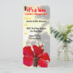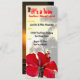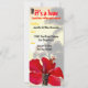 Invitaciones a un luau colorido y divertido en una forma única y larga con un toque de los trópicos, con un auténtico tiki hawaiano de madera y palmeras a lo largo de la playa.