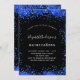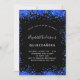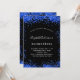 Una joven y de moda Quinceañera, 15ª invitación a la fiesta de cumpleaños. Un fondo negro de moda. Decorada con purpurina falso azul real, chispas. Personalice y agregue un nombre y detalles del fiesta. El nombre se escribe con un guión de estilo con letras a mano.