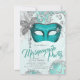 Invitación Fiesta de Máscara Azul Turquesa Plateada Cumpleaño