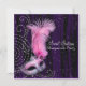 Máscara elegante de plumas rosadas plateadas con brillo con fondo morado negro y blanco con acentos de perlas. Esta bonita invitación de fiesta de máscara de dieciséis cumpleaños morada, rosa intenso y negra se personaliza fácilmente para tu fiesta o evento agregando los detalles de tu evento, estilo de letra, tamaño y color de letra, y redacción. Por favor, tenga en cuenta que todos los adornos para pastel, tarjetas y diseños de invitaciones que encontrarás en Zazzle son gráficos impresos sin joyas reales, lazos, partes o piezas en relieve, repujados o agregados.
