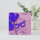 Invitación de fiesta de máscara azul real púrpura rosa con máscara de plumas. Agregue sus datos en la parte delantera y trasera simplemente eligiendo el botón naranja "¡Personalízalo!" para comenzar a agregar los detalles de su evento, estilo de fuente, tamaño y color de fuente, y redacción. Tenga en cuenta que todos los diseños de invitaciones que encontrará en Zazzle son gráficos impresos en papel plano sin joyas reales, lazos, partes o piezas en relieve, estampados o agregados.