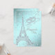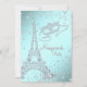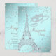 Elegante fiesta de disfraces de París con torre Eiffel de diamantes y máscara de diamantes sobre un bonito fondo azul turquesa y diamantes. Esta elegante invitación de fiesta de disfraces azul turquesa se personaliza fácilmente para su evento simplemente añadiendo los detalles de su evento, estilo de fuente, tamaño y color de la fuente, y redacción. También puede eliminar el fondo azul turquesa y agregar su propio color de fondo. Este es un diseño impreso sin diamantes reales, purpurina, etc.