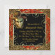La elegante invitación para una fiesta de máscaras en tonos naranja, negro y dorado presenta una máscara dorada de Mardi Gras veneciano completa con campanas sobre elegantes remolinos dorados y un fondo de leopardo en naranja, negro y dorado. Esta invitación para una fiesta de máscaras en dorado y rojo funciona bien para una fiesta de máscaras de Halloween, una fiesta de máscaras de Sweet Sixteen, una fiesta de máscaras de Quinceañera, un baile de máscaras, una fiesta de Martes de Carnaval, una fiesta de Mardi Gras, una fiesta de Carnaval, un baile de graduación de máscaras, o cualquier otra fiesta de máscaras con tema dorado y rojo y se personaliza fácilmente para su evento simplemente eligiendo el botón naranja "¡Personalízalo!" para comenzar a agregar los detalles de su evento, el estilo de letra, el tamaño y color de