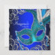Invitación Fiesta de Máscaras Real Plateado y Azul Cian