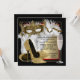 Invitación elegante de cumpleaños de mujer con máscara roja y dorada con hermosos zapatos de tacón alto con brillo dorado y máscara de máscara dorada elegante y ornamentada y copa de champán en un bonito fondo rojo, negro y dorado. Esta invitación de máscara de disfraz de rojo, negro y dorado se personaliza fácilmente para su fiesta o evento simplemente agregando los detalles de su evento, estilo de fuente, tamaño y color de fuente y redacción. Tenga en cuenta que todos los diseños de invitaciones que encontrará en Zazzle son gráficos impresos sin joyas, lazos, brillo, etc. reales.