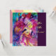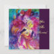 nocturno veneciano colorido con un carácter expresivo y romántico: un violinista caprichoso con trajes de fucsia rosa y brillante plumas y un búho gracioso a la luz de la luna, con una hermosa rosa roja dorada en el reverso de la tarjeta. Pintura acuarela de color rojo brillante, azul, amarillo, chispas doradas, inspirada en Piero (Pierrot), Comedia de Arte (Commedia dell'arte) y Carnaval de Venecia. Es una hermosa tarjeta de invitación para las vacaciones, fiestas de disfraces de mascarada de Mardi Gras, ocasiones especiales, fiestas de cumpleaños para niños, dulce 16, baile de máscaras de Nochevieja, El día de San Valentín, aniversarios, reuniones ¡casi cualquier evento que quieras!