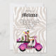 Fashion Party Invitation Scooter Woman Pink Leopard es genial para una despedida de soltera o dulce 16.