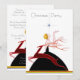 Invitaciones personalizadas de celebración de fiesta de Navidad con arte deco antiguo de flapper y ciervo. Una hermosa ilustración art déco antigua con una glamurosa flapper de la época de 1920 / 1930 con un vestido negro elegante que mira una estrella sobre ella. Hay un elegante ciervo rojo saltando con cuernos en primer plano. Invitaciones dobles laterales clásicas, chic, simples, románticas, femeninas, clásicas, antiguas, lindas y caprichosas para fiestas navideñas. Perfecto para cenas formales festivas y eventos corporativos y empresariales, así como celebraciones familiares. Todo el texto es totalmente personalizable según tus necesidades, con muchas fuentes para elegir. Estas invitaciones personalizadas, vintage y originales, mágicas, bonitas, sofisticadas, de moda, únicas y originales se imprimen en ambos lados.