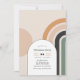 Invite a sus invitados a celebrar las fiestas con estilo con esta invitación de fiesta de Navidad con arcoíris boho retro. Con una cálida paleta de colores de mediados de siglo de naranja quemada, verde salvia y crema, el audaz diseño de arco geométrico añade un toque juguetón y sofisticado. Perfecta para reuniones navideñas bohemias, modernas y minimalistas, esta invitación totalmente personalizable hace que sea fácil mostrar los detalles de su evento con un toque festivo único.