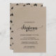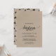 Esta invitación simple de caligrafía para fiesta de Navidad con estilo kraft falso es perfecta para un evento festivo rústico. El diseño neutral presenta una fuente elegante de letra de pincel y un pequeño árbol de Navidad en un fondo de papel kraft falso. La parte posterior presenta un patrón de bosque de hoja perenne.