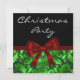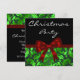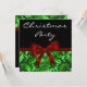 Invitación a la fiesta de Navidad con lazo rojo de Damasco verde y blanco negro.