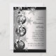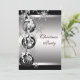 Elegantes adornos de árbol de Navidad en forma de copos de nieve en plateado, negro y blanco para invitaciones de fiesta corporativa de Navidad. Esta hermosa invitación de fiesta de Navidad en negro y plateado se personaliza fácilmente para su evento simplemente eligiendo el botón "¡Personalízalo!" para comenzar a agregar los detalles de su evento, estilo de fuente, tamaño y color de fuente, y redacción. Tenga en cuenta que todos los diseños de tarjetas e invitaciones que encontrará en Zazzle son gráficos impresos sin joyas, lazos, partes o piezas elevadas, grabadas o agregadas.
