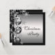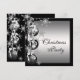 Invitaciones de fiesta de Navidad corporativas de copos de nieve blancos y negros plateados.