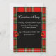 Elegante y distinguido tartán escocés en colores rojo, verde y blanco, damasco floral negro, lazo de seda brillante y piedras preciosas de rubí y esmeralda en 3D. Fácil de personalizar con tus iniciales y texto propio como anuncio, tarjetas de lugar, save-the-date, agradecimiento, showers de novia, cumpleaños, fiestas, showers de compromiso, o casi cualquier evento que desees.