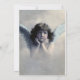Hermoso diseño vintage de un dulce ángel de Navidad con alas blancas suaves y mejillas sonrosadas, sosteniendo su rostro entre sus manos. Mirando pacíficamente y con amabilidad. El fondo está lleno de nubes suaves y etéreas. Personalice / personalice con los detalles de su fiesta de Navidad.