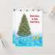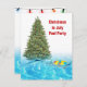 Árbol de Navidad con agua de piscina y juguete de piscina para invitación de fiesta de Navidad en Julio. Todo el texto es editable.