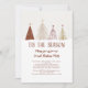 El diseño festivo de temporada presenta una elegante exhibición de árboles de Navidad nevados en rojo, dorado y rosa sobre un fondo beige crema ligeramente rayado y neutro. La sección inferior está cubierta de nieve blanca con "ES LA TEMPORADA" en tipografía clásica elegante. Agrega la línea de invitación de tu fiesta personalizada y los detalles con la plantilla fácil de usar con la letra y el script rojo a juego. ¡No te pierdas los vasos, servilletas, platos de papel y posavasos a juego! Por favor, envía un mensaje o correo electrónico a beachpausedesigns@gmail.com para obtener ayuda para personalizar aún más.