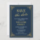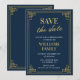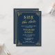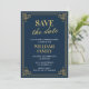 Elegante fiesta de Navidad invitaciones Guarda la fecha Azul marino Dorado chic moderno