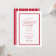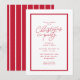 Invite a amigos y familiares a una fiesta clásica de Navidad con esta sencilla invitación roja y blanca que presenta un borde rojo, "fiesta de Navidad" en letra cursiva y texto rojo simple para todos los detalles. Este diseño festivo es parte de una colección de Lea Delaveris Design y coordina con tarjetas, suministros para fiestas, papel de regalo y más. La parte trasera es un rojo a juego con rayas blancas onduladas. Celebre la temporada con este diseño festivo y divertido que también está disponible como descarga digital de invitación a una fiesta de Navidad.