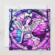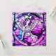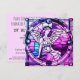 Esta encantadora invitación a una fiesta de navidades morados y rosas tiene un ángel hecho al estilo de una vidriera. La parte posterior incluye todos los detalles del fiesta en un fondo rosado. La perfecta invitación de temporada para todas sus reuniones, ya sea en casa, en casa alquilada o en la iglesia. Este diseño contiene A.I.