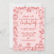 Invite a los huéspedes a su fiesta de vacaciones con esta encantadora y festiva invitación a los Navidades. El diseño tiene un fondo rosa rubor con fuentes rojas y ilustraciones de arte de la línea de doodle dibujados a mano por todos lados, como Santa, snowmen, medias, vegetación, adornos y otros clásicos iconos de vacaciones, mezclados con cócteles festivos e incluso una torre de champán para una vibrante atmósfera fiesta. El centro mantiene las cosas simples con un guión escrito a mano combinado con fuentes limpias, dándole el aspecto de una nota escrita a mano dulce. Perfecto para cualquier tipo de celebración de vacaciones, desde una reunión familiar a un fiesta de trabajo o una noche festiva de cóctel, el texto es completamente personalizable para coincidir con tu evento. Disponible como una invitación impresa o una prueba digital descargable, para que pueda enviarla por correo, correo electrónico o imprimir localmente.