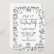 Invite a los huéspedes a su fiesta de vacaciones con esta divertida, caprichosa y festiva invitación a los Navidades. El diseño incluye ilustraciones de arte de la línea de doodle dibujados a mano por todos lados, como Santa, hombres de nieve, medias, vegetación, adornos y otros clásicos íconos de vacaciones, mezclados con cócteles festivos e incluso una torre de champán para una animada atmósfera fiesta. El centro mantiene las cosas simples con un guión escrito a mano combinado con fuentes limpias, dándole el aspecto de una nota escrita a mano. Perfecto para cualquier tipo de celebración de vacaciones, desde una reunión familiar a un fiesta de trabajo o una noche festiva de cóctel, el texto es completamente personalizable para coincidir con tu evento. Disponible como una invitación impresa o una prueba digital descargable, para que pueda enviarla por correo, correo electrónico o imprimir localmente.