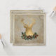 EXQUISITO aspecto de hoja de oro (hecho de una foto real de una hoja de oro) silueta de un ciervo silvestre con ángulos y una corona de pinos dorados sobre un antiguo papel de antaño de la época de la efemera francesa vintage. Un segundo borde de hoja de oro esboza el fondo blanco suave de aceite pintado. En el reverso está el texto de invitación de tu grupo de Navidades y una versión más pequeña de la cabeza de ciervo y de la impresora grabada en rosetones y rosettes decorativos. Moderno pero clásico, elegante y perfecto para unas vacaciones de invierno con clase.