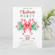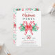 El diseño de la invitación a la fiesta de los Navidades incluye cañas de caramelo de menta de color agua, un gran arco rojo con Navidades verdes como la hojalea con bayas rojas, agujas de pino y flores rojas. Puede personalizar de todo el texto para su evento. En la parte trasera de la invitación hay un patrón de caña de dulces con muchos de los mismos ilustraciones y más dulces de menta. Vea toda la colección coincidente.