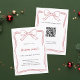 Para un fiesta Navidad con familia y amigos. Decorada con un arco rojo y sencillo dibujado a mano. Personalice y agregue los detalles. Navidades fiesta con corazón. Código QR en su sitio web para obtener información sobre RSVP y fiesta.