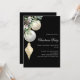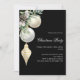 Para un fiesta Navidad con familia y amigos. Un elegante y moderno fondo negro. Decorada con baudias blancas y doradas, con un poco de vegetación y un cono de pino. Personalice y agregue los detalles. Atrás: agregue la URL de su sitio web al código QR para los detalles de RSVP y/o fiesta.