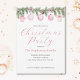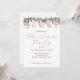 Esta encantadora y personalizable invitación a la fiesta de Navidades incluye una baudible rosa y una rama de abeto en un fondo blanco. Esta elegante invitación captura perfectamente el calor y la alegría de la temporada y puede ser fácilmente personalizada con los detalles de su fiesta.