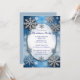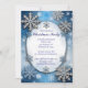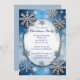 Bellos copos de nieve azules y plateados se deslizan alrededor de un marco oval en esta fabulosa invitación a fiestas de vacaciones. La parte posterior es azul claro y se complementa con la sombra.