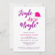Invitación a la fiesta Jingle y Mingle de Navidades modernos con un moderno guión de escritura a mano, un poco de corazón y un sombrero Santa en un moderno color morado y rosa caliente.