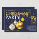 Invitación a la fiesta de Navidades adornados con purpurinas de oro azul moderno. Personalizar todos los campos de texto para darle un toque especial al evento.