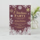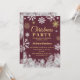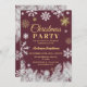 Esta elegante invitación del Partido de los Navidades tiene un fondo rojo adornado con intrincados copos de nieve blancos y dorados. En la parte inferior hay ramas de pino espumoso y espumoso que le confieren un encanto de invierno. El diseño crea un ambiente festivo y sofisticado, perfecto para celebrar las vacaciones.